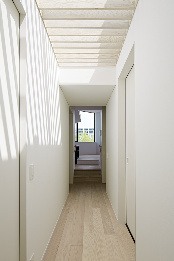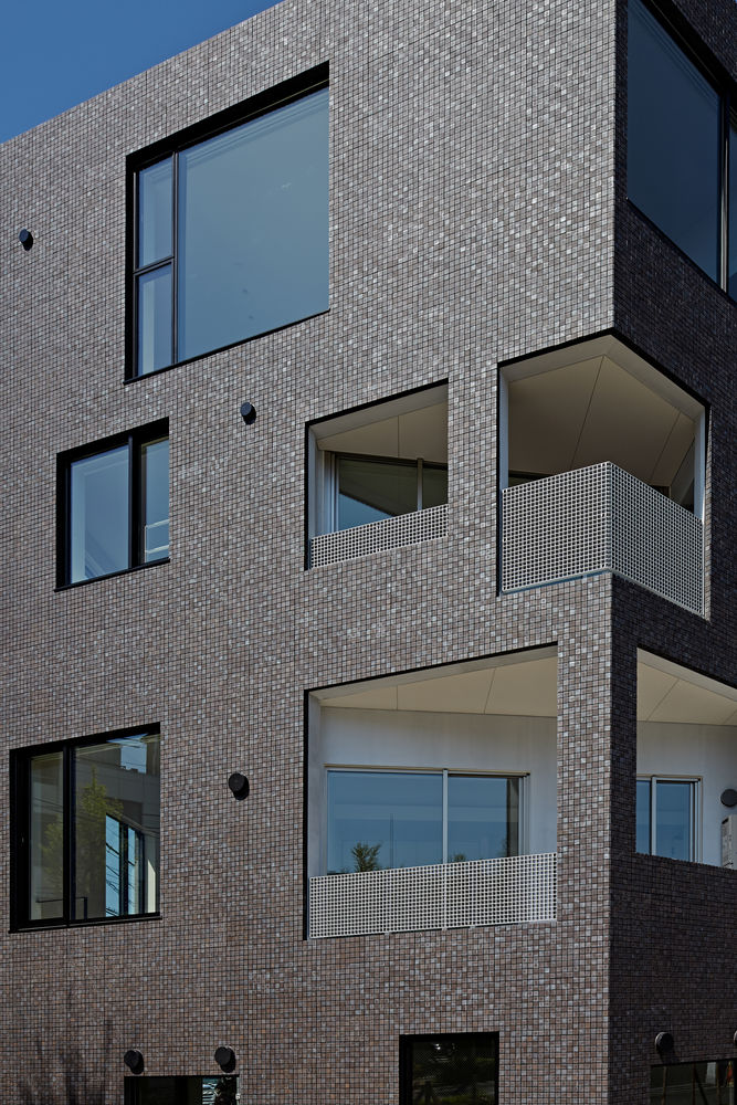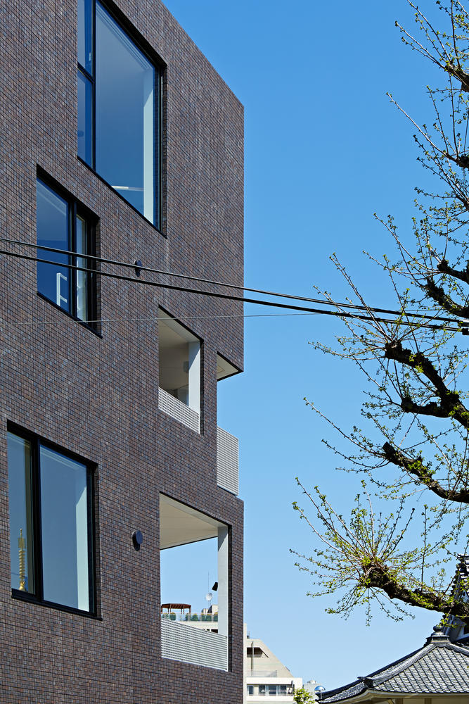 コンセプト 世田谷通り沿いのちょっと変わった敷地に建つ集合住宅。 計画敷地は元々は整形の角地だったのが計画道路(新しく敷設された道路)と隅切りにより削られ、 ほぼ全面が道路に囲まれた6角形の変形敷地となっていた。 敷地形状の変更によって建替えをすることになり、まるで道路の中に建つような状況で、 建物は全ての道路に正面となるような形状とし、また窓やバルコニーの開口も全面にランダムな配置で設けている。 内部空間は螺旋状のスキップフロアとすることで平面的な広がりと周囲全面への眺望を確保した計画としている。 建築概要 用 途 :集合住宅+テナント 構造設計:長坂設計工舎 構造規模:壁式RC造・4階 設備設計:ギア設計パートナーズ 竣 工 :2013年 施 工 :TH−1 延床面積:390u 写真撮影:鳥村鋼一写真事務所 |